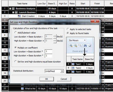 Assigning Low and High Estimates for Duration and Cost for Group of Tasks