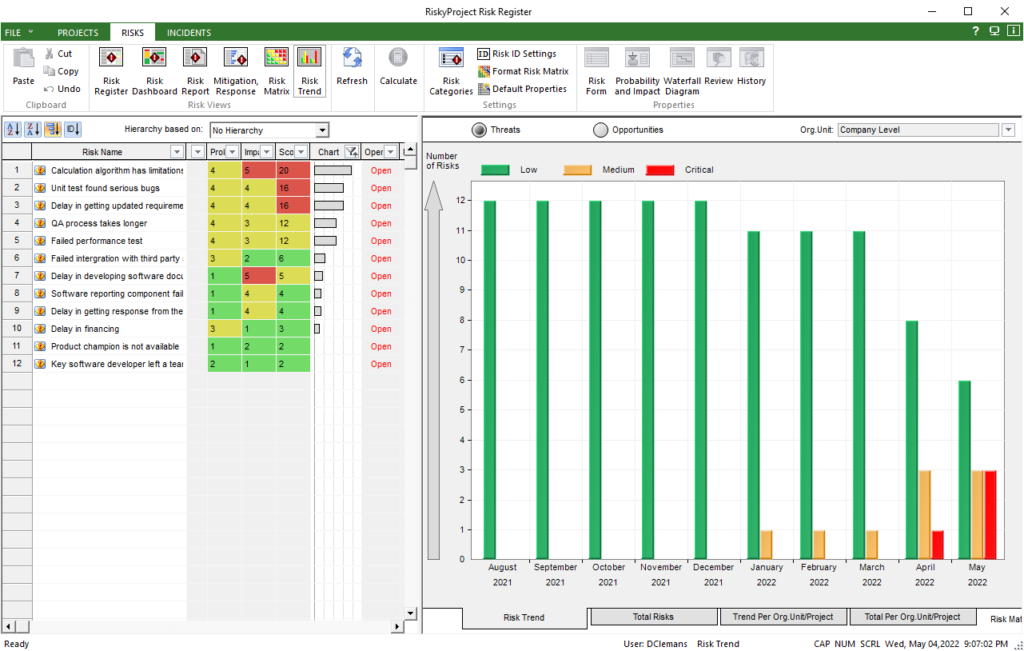 RiskyProject Risk Register is an optional value priced component for use with RiskyProject Enterprise. The Risk Register module is suitable for: